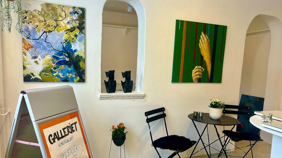 Galleri med faste kunstnere, gæstekunstnere og malekurser.